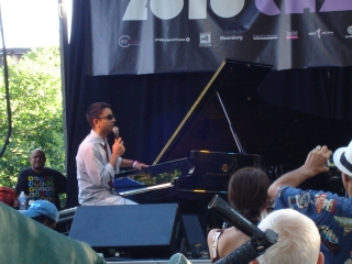 そして聞こえてきた、暑い日に熱い、モード系ハードバップ。フロント4管の分厚いサウンドを、ビリー・ハートのメリハリのある迫力ドラムが下支えします。ビリー・ハーパー、デヴィッド・ワイスはじめ、全員が突撃系のソロを見せて、男くささ満点でした。 17:00 Vijay Iyer trio Vijay Iyer(p), Stephan Crump(b), Marcus Gilmore(ds) Sun, August 29, 2010 17:00